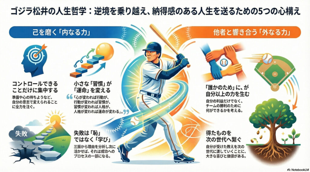 私がこれまでの野球人生、そして一人の人間としての歩みの中で辿り着いた答えは、決して派手なものではありません。しかし、それこそが私の土台となり、私を支えてくれたものです。