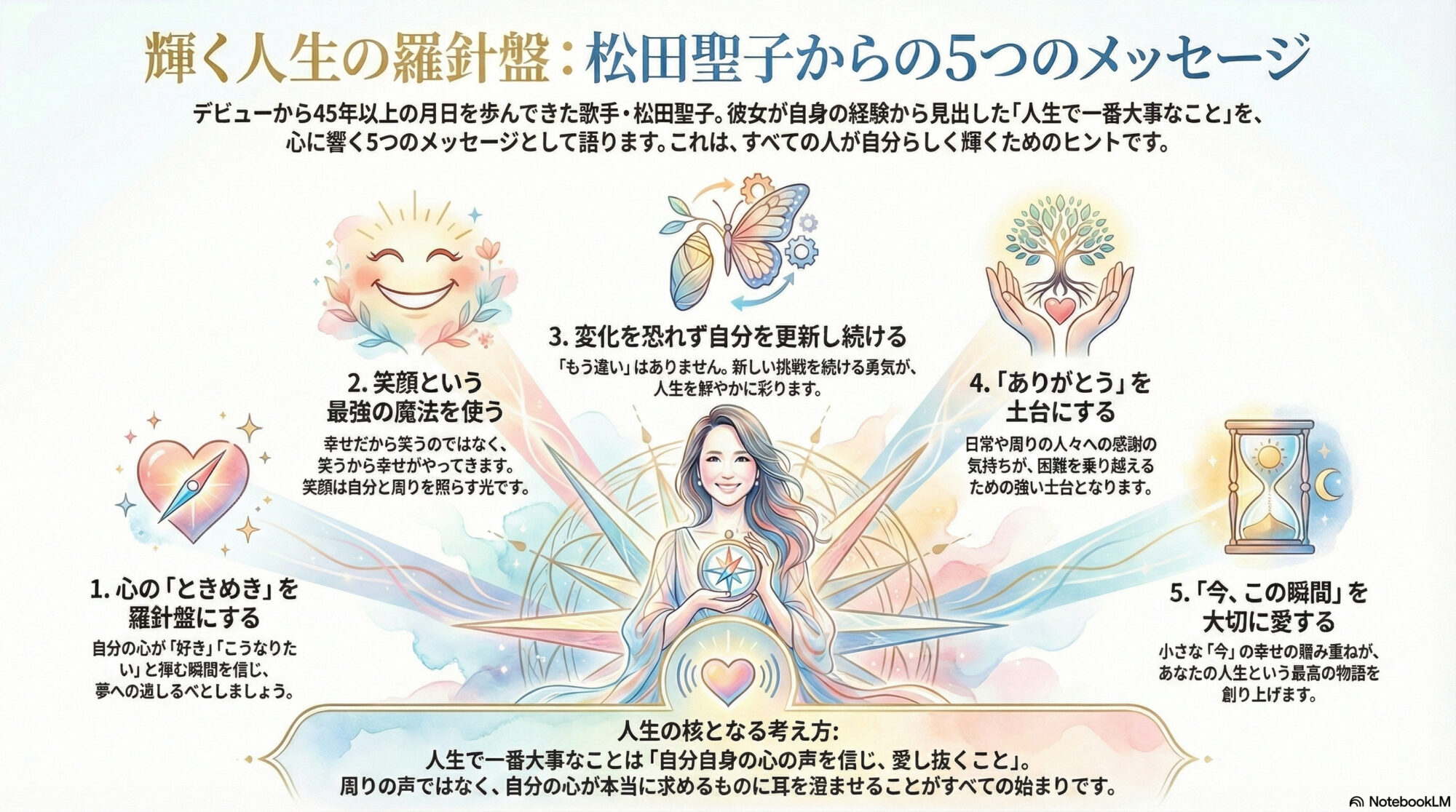 皆さん、こんにちは。松田聖子です。 今日、こうして「人生で一番大事なことは何か」という、とても深くて…