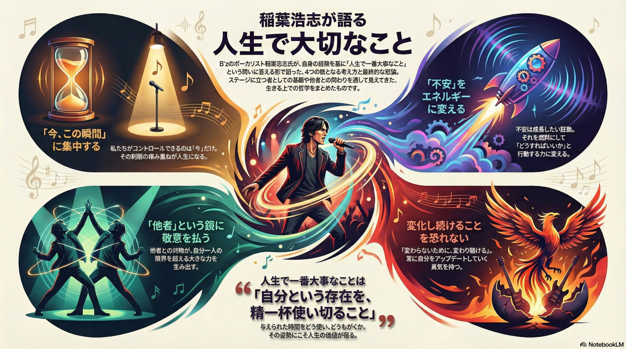 こんにちは、稲葉浩志です。 「人生で一番大事なことは何か」という問いですね。 そうですね……。あらため…