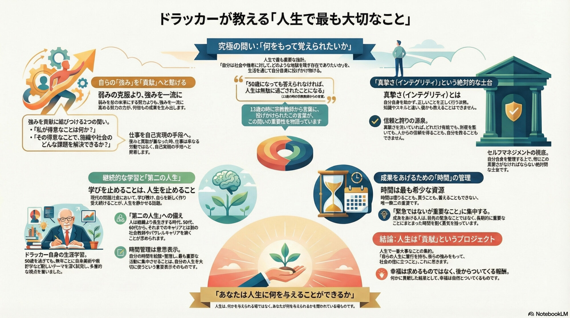 私はピーター・ドラッカーです。あなたが「人生で一番大事なことは何か」と私に問うたこと、それは非常に…